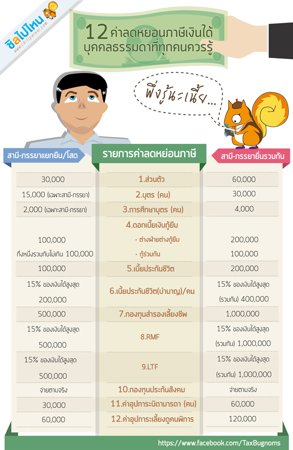 12 ค่าลดหย่อนภาษีเงินได้ บุคคลธรรมดาทีทุกคนควรรุ้